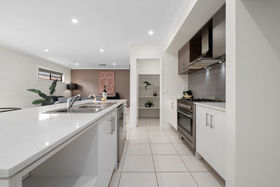 The master bedroom features a private ensuite and walk-in robe, while the remaining three bedrooms are generously sized and are serviced by a bright central bathroom. The heart of the home is the open-plan kitchen, equipped with quality 900mm stainless steel appliances, walk in pantry and overlooking the meals, dining, and spacious living area - perfect for entertaining or relaxing with family.