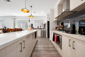 At the heart of the home is a generous, light-filled open-plan second living and dining area, perfect for everyday family living. The contemporary kitchen is well appointed with 900mm stainless steel appliances, dishwasher, walk-in pantry and 40mm stone benchtops, making it both stylish and functional.